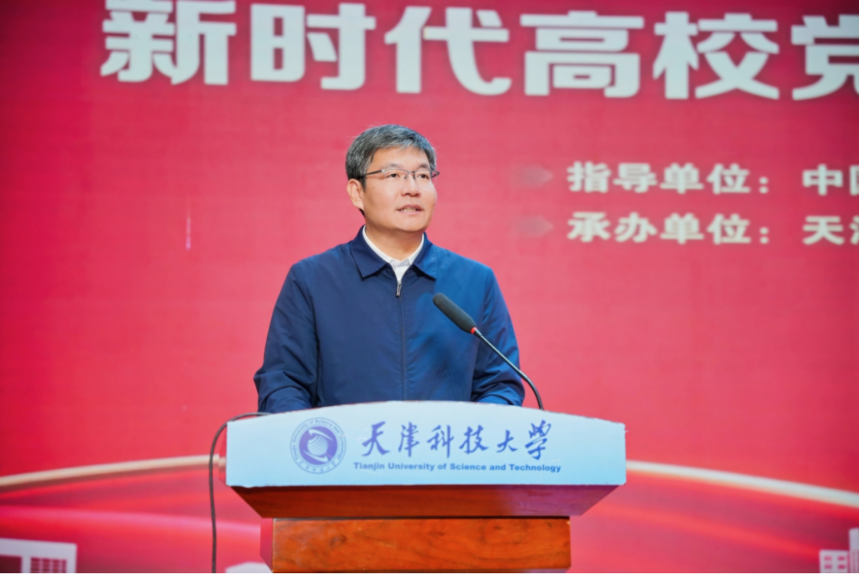 开幕式上,天津科技大学党委副书记贾启君系统介绍了学校的发展历程与办学底蕴,并分享学校实施高质量内涵发展“先锋计划”的思考与实践,全面展示了在推动党建与事业发展深度融合方面取得的探索成果与工作成效。中国高等教育学会副会长、中国高等教育培训中心主任姜恩来在视频致辞中强调,党的二十届四中全会为高校党建工作指明了方向,各高校应紧扣“一融双高”核心要求,以强化政治引领筑牢思想根基、以改革创新激活发展动能、以精准考核压实落地成效,将党的领导贯穿高校治理各环节,把党建优势转化为发展效能,为教育强国建设注入强劲动力。