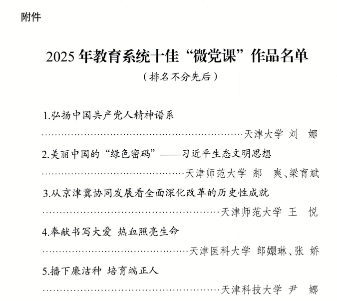 更多+| 喜报!天津科技大学微党课作品获评 天津市教... | 2026-04-29 | |